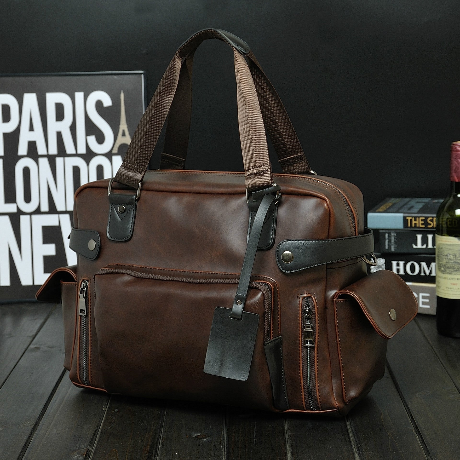 Màu nâu cà phê chủ đạo giúp túi trở nên thanh lịch, dễ phối với vest, áo sơ mi hay quần tây, thể hiện phong thái chuyên nghiệp của người đàn ông hiện đại.